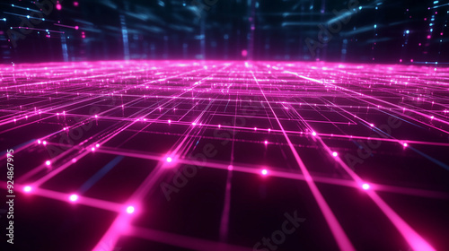 Abstract Digital Landscape with Neon Data Grid