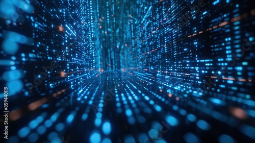 Abstract digital matrix background with encrypted data streams and binary code representing cybersecurity defenses