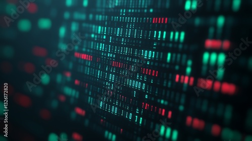 Abstract Digital Matrix with Floating Binary Code in Green and Red Colors Representing Data Processing