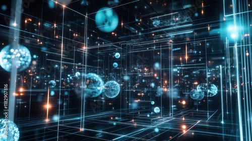Abstract Digital Network: A Visualization of interconnected data spheres and lines in a virtual 3D space, representing the complexity and vastness of digital information.