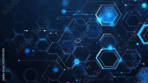 Abstract digital network background, glowing hexagons, data flow, technology concept, website banner