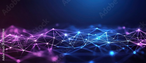 Abstract Digital Network Background with Glowing Blue and Purple Nodes