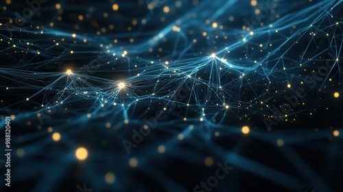 Abstract Digital Network Background with Glowing Nodes and Lines.