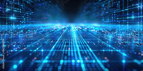 Abstract Digital Network Grid With Glowing Blue Lines and Data Points