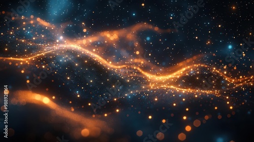 abstract digital network visualization interconnected nodes forming global shape data streams glowing particles deep space background futuristic interface elements