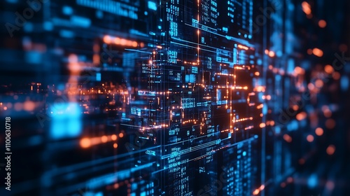 Abstract Digital Network with Blue and Orange Glowing Lines