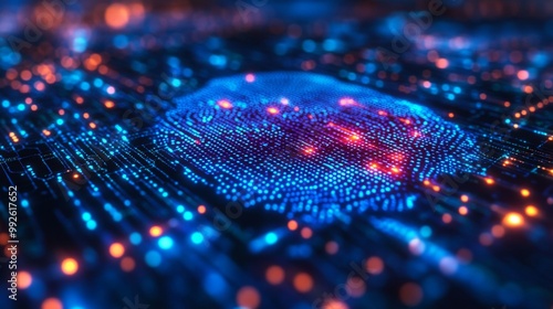 Abstract Digital Network with Glowing Blue and Orange Lights