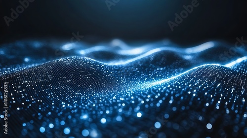 Abstract Digital Network with Glowing Blue Nodes particles wave