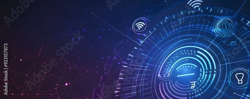 Abstract Digital Network With Glowing Lines and Icons