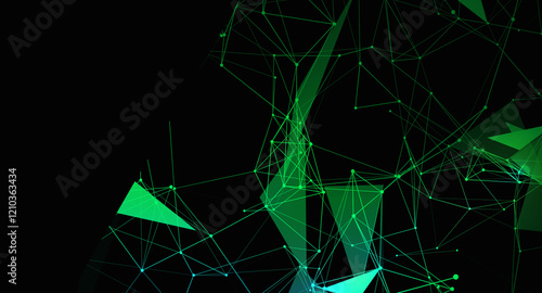 Abstract Digital Network with Green Lines and Triangles on Black Background