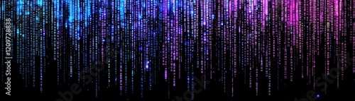 Abstract Digital Rain Background Purple Blue Binary Code Streaming Down