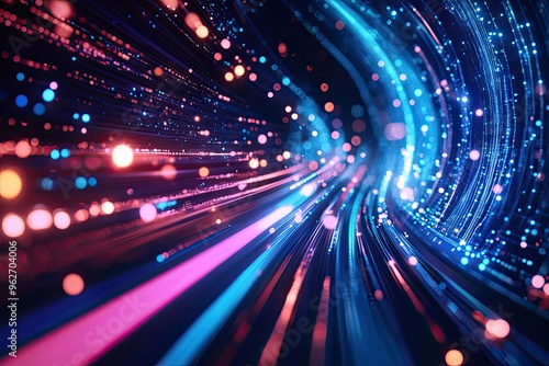 Abstract digital technology background. Innovation high-tech future network connection speed movement AI metaverse communication big data data transfer Network cyber light trails
