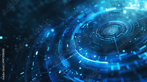 Abstract Digital Technology Background with Bokeh Lights and Geometric Pattern