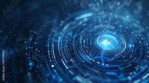 Abstract Digital Technology Background with Bokeh Lights and Geometric Pattern
