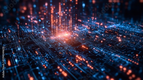Abstract Digital Technology Background with Bright Glowing Elements