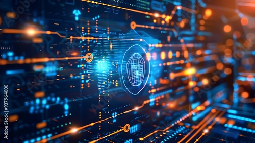 Abstract digital technology background with glowing lines and circuits representing the interconnectedness of data and information in the modern world.