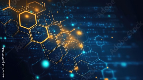 Abstract digital technology background with hexagonal patterns and glowing elements