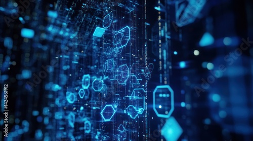 Abstract digital technology wall, futuristic display, data stream, graphic, conceptual, background, visual, design element