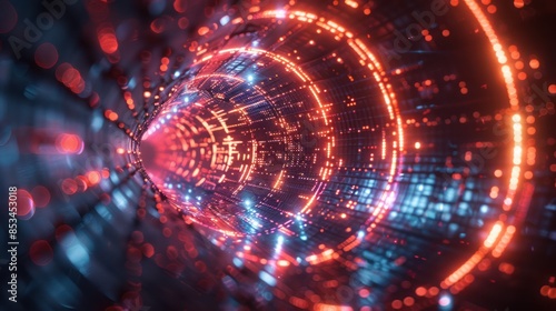 Abstract Digital Tunnel with Red and Blue Lights