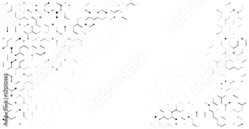 Abstract digital vector background with texture from hexagons, lines and dots.