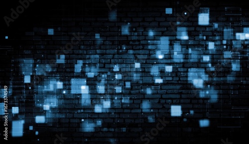 Abstract digital wall with glowing square pixels