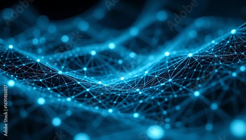 Abstract digital wave network with glowing blue connections