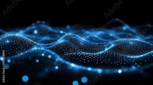 Abstract digital wave pattern of light blue particles