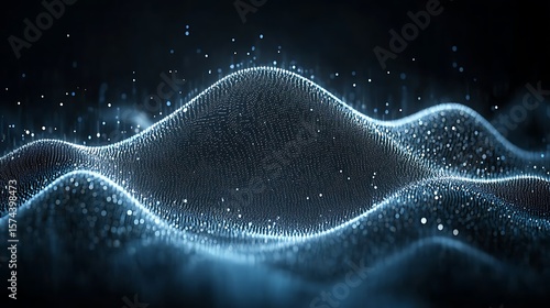 Abstract digital wave pattern with shimmering particles.