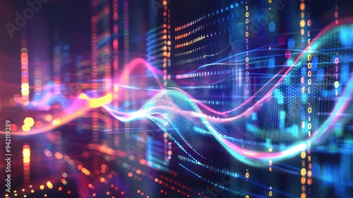Abstract Digital Wave with Binary Code and Lights