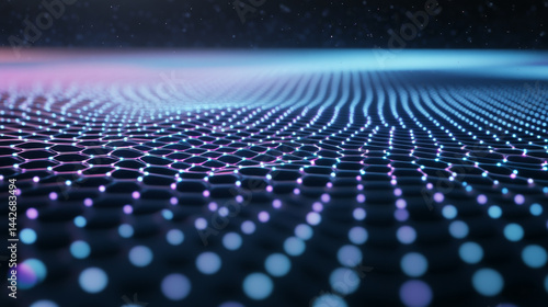 Abstract digital wave with flowing particles and dynamic lights, futuristic background