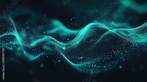 Abstract digital waves in a glowing teal color scheme, representing data flow and connectivity.