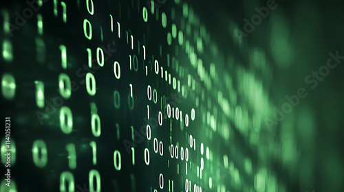 Abstract digital waves with binary code on a dark green background, symbolizing data flow
