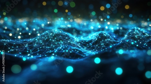 Abstract Digital Waves with Glowing Dots and Connecting Lines