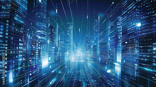 Abstract ethereal light enhances the futuristic vibe of the high-tech theme.