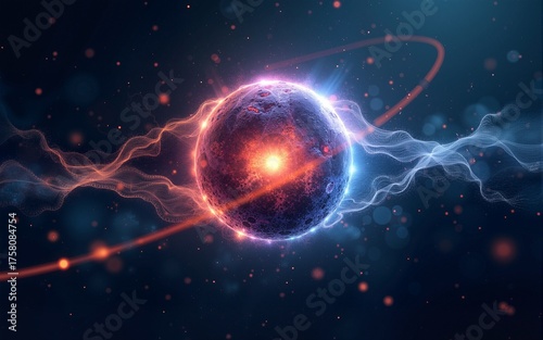 Abstract fiction vector illustration quantum computer technology. Sphere explosion background. Deep learning artificial intelligence. Big data visualization algorithms. Waves flow. Quantum explosion