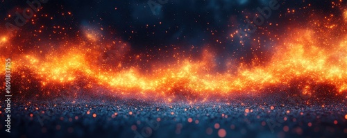 Abstract fiery landscape with glowing sparks and dark dramatic backdrop