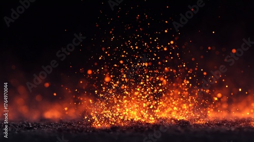 Abstract fiery particles rising against a dark background, creating a dynamic visual