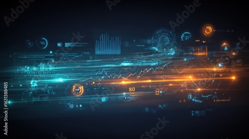 Abstract Financial Data Visualization with Digital Interface Elements and Futuristic Information Technology