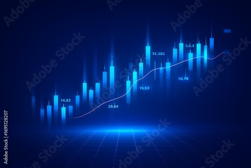 Abstract Financial Trading Chart with Digital Stock Market Growth on Blue Background.