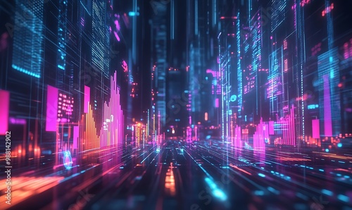 Abstract Floating 3D Graphs and Charts Representing Industry Benchmarks