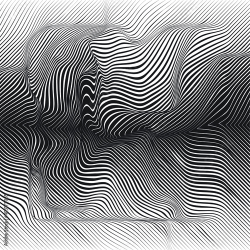 Abstract flow lines background . Fluid wavy shape .Striped linear pattern . Music sound wave . Vector illustration