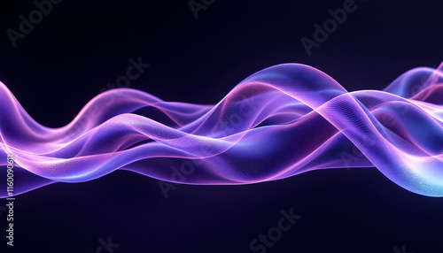 Abstract fluid holographic iridescent purple curved wave in dark background 3d render. Gradient design element for backgrounds, and wallpapers. Abstract dark holographic iridescent neon background