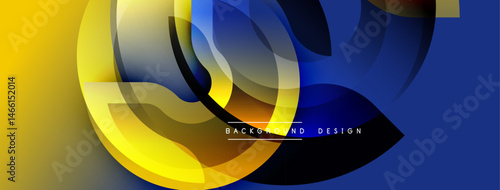 Abstract fluid shapes, vibrant yellow, blue gradients. Modern design element with layered forms, dynamic composition. Text reads background design.