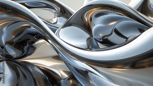 Abstract forms and shapes with a metallic sheen and reflective surfaces