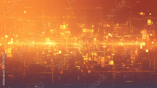 Abstract futuristic background in red and yellow colors. Digital technologies, abstract microcircuits and processors. Bokeh effect. AI generative