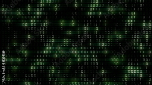 Abstract futuristic background of binary code in green color with random directional blur of single digits. Digital systems technology theme - cyber internet or network concept - 3D illustration
