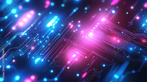 Abstract futuristic background with a circuit board and neon lights. Digital technology concept