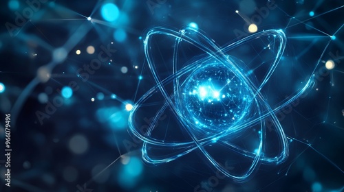 Abstract Futuristic Blue Background with Atomic Model - AI generated illustration