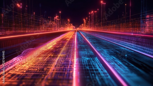 Abstract Futuristic City Road Network At Night