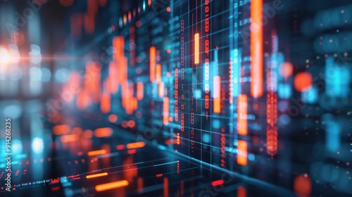 Abstract Futuristic Data Network with Digital Grid Lights